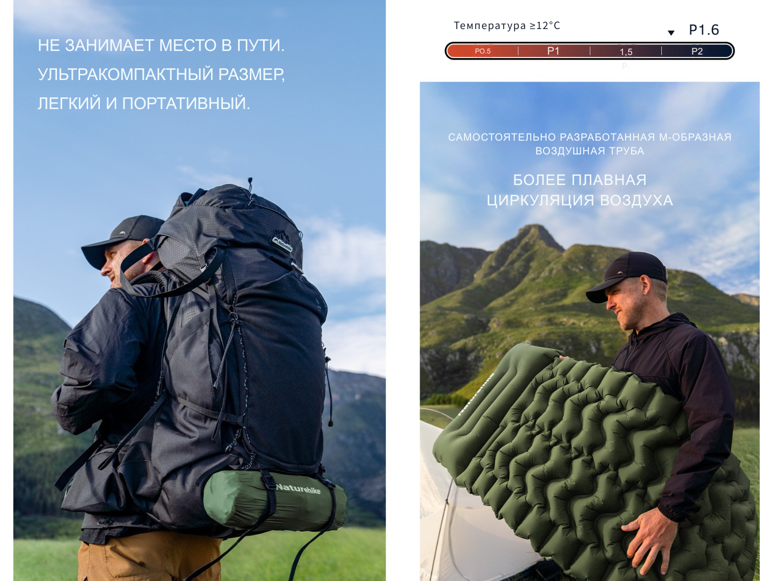 Двухместный матрас Naturehike CNK2550WS019 — это гарант качественного отдыха и здорового сна под открытым небом. Уровень теплоизоляции модели (рейтинг R-Value) составляет R1.6, что идеально для использования при температуре от 12 °C и выше.
