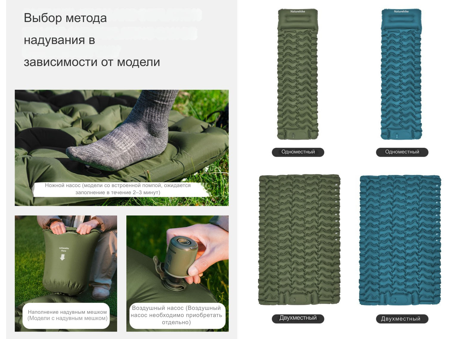 - надувной матрас Naturehike с подушкой и мешком для надувания;
