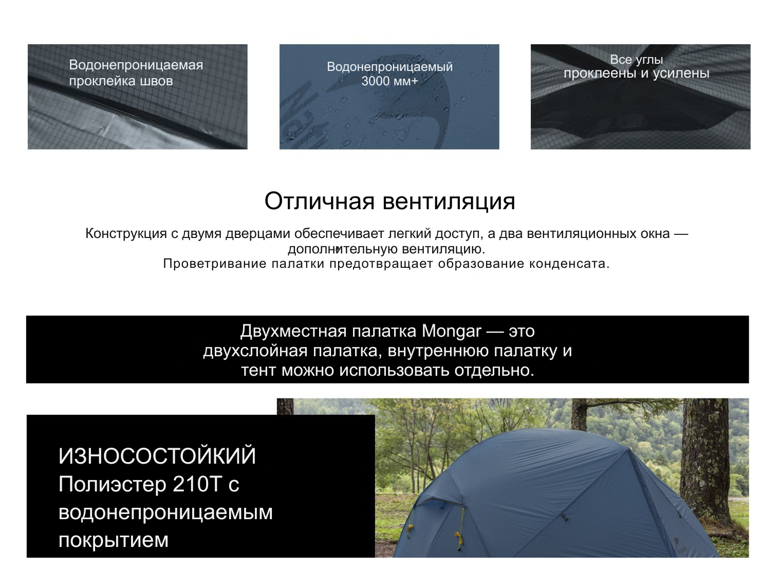 - ультралегкая палатка Naturehike Mongar с двухслойной конструкцией;