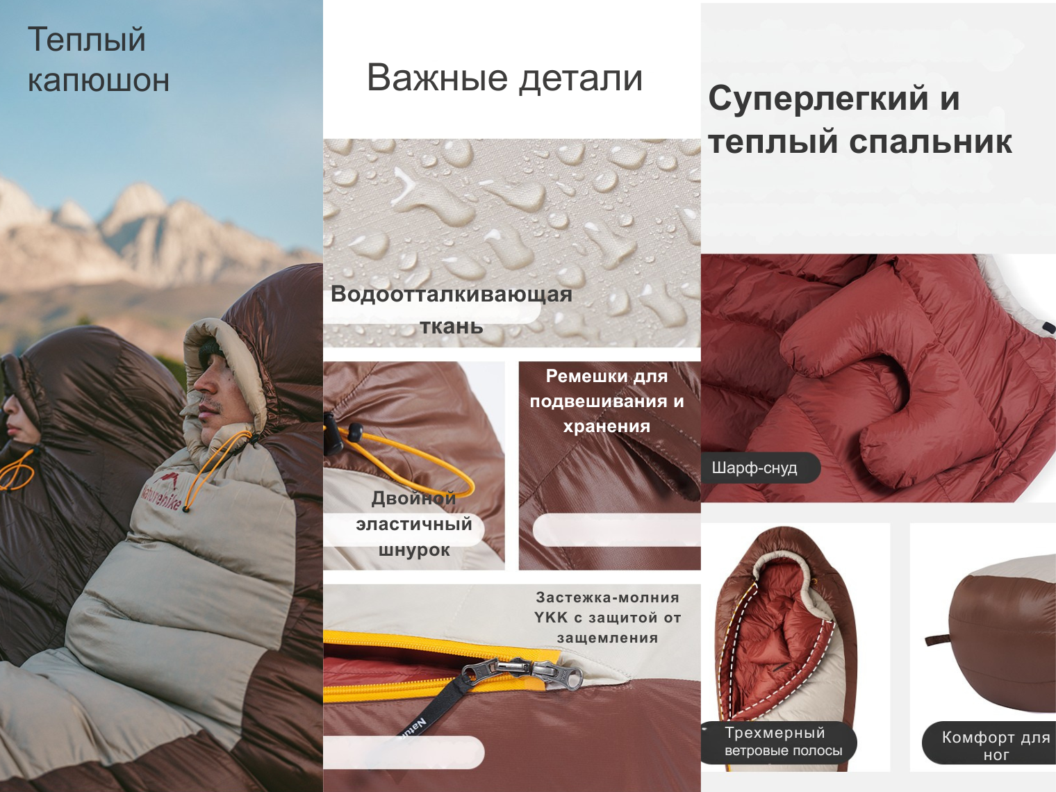 Инженеры Naturehike продумали каждую деталь дизайна для максимального комфорта. Регулируемый капюшон защищает голову от мороза и пронизывающих сквозняков, создавая ощущение уюта даже при резких перепадах температуры. Внутренняя вставка вокруг шеи добавляет мягкости и служит дополнительным барьером для холода.