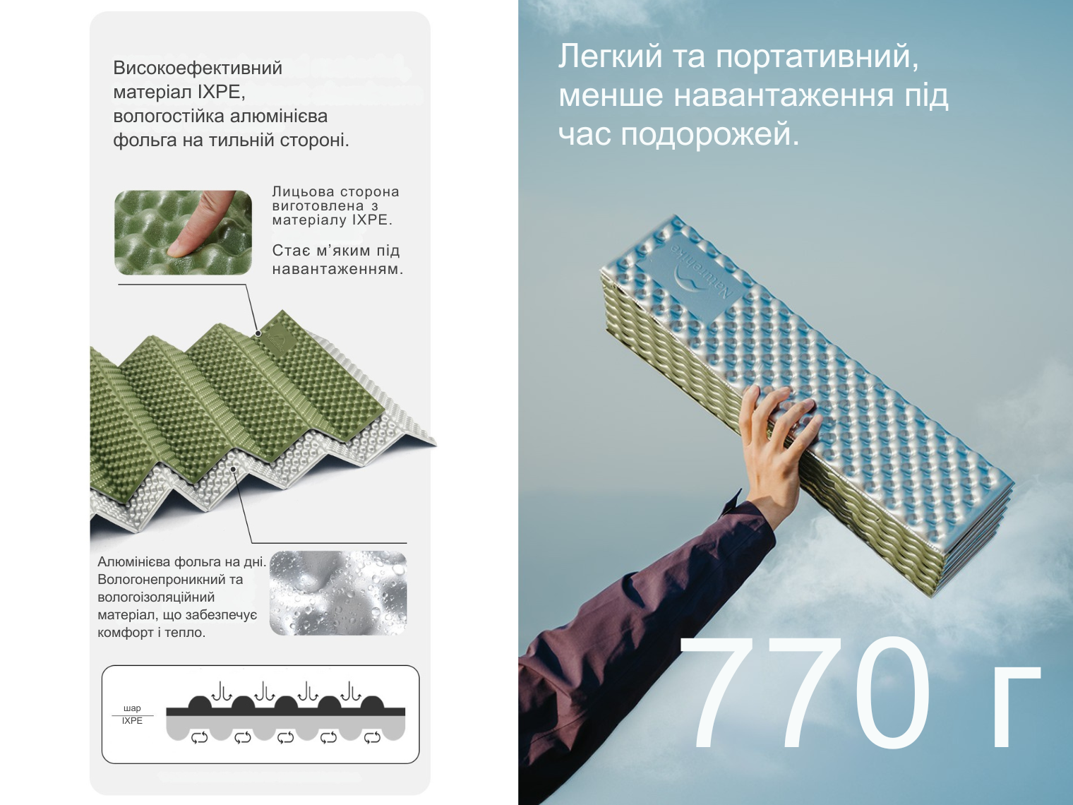 - складаний килимок Naturehike для походу, туризму, пікніка, активного відпочинку;