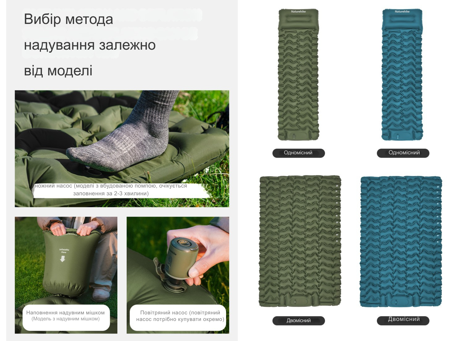 - надувний матрац Naturehike з подушкою та мішком для надування;