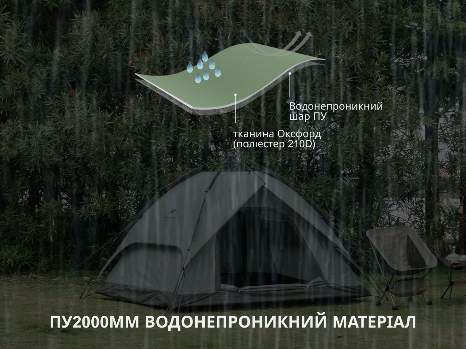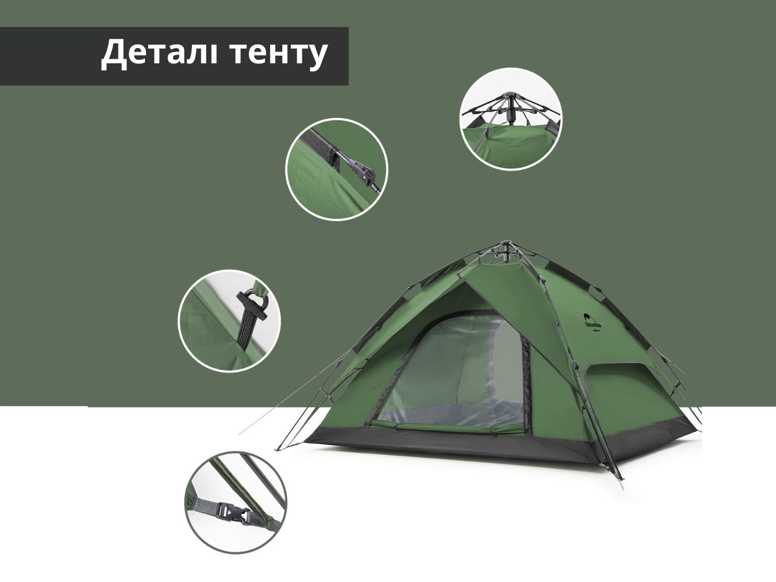 Опис чотиримісного автоматичного намету Naturehike NH21ZP008, темно-зелений